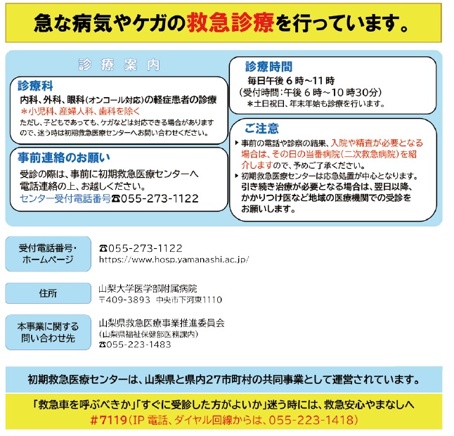 くらし 山梨大学医学部附属病院 初期救急医療センターのお知らせ 19/52 前の記事 次の記事 発行日 : 2025年09月01日 自治体名 : 山梨県笛吹市 広報紙名 : 広報ふえふき 2025年9月号 Tweet シェアする 9月10日 世界自殺予防デー 9月10日~16日 自殺予防週間 上手な医療のかかり方 できていますか?