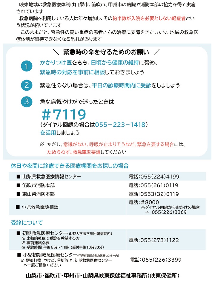 くらし 上手な医療のかかり方 できていますか? 20/52 前の記事 次の記事 発行日 : 2025年09月01日 自治体名 : 山梨県笛吹市 広報紙名 : 広報ふえふき 2025年9月号 Tweet シェアする 山梨大学医学部附属病院 初期救急医療センターのお知らせ 非常食だけじゃない! 日常の食品をローリングストックしよう