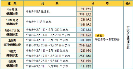 ※乳幼児健診を欠席される場合は、子育て支援課へご連絡ください。