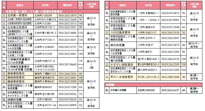 ※利用定員など、変更する場合があります。開所時間など、詳しくは各保育所等へお問い合わせください。