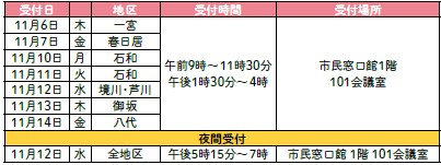 受付日程一覧:
