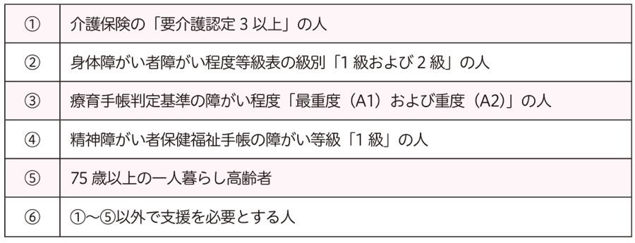 ■上野原市避難行動要支援者名簿の登録対象者((1)〜(6)いずれかに該当し、在宅で生活する人)