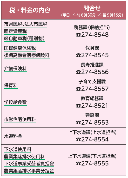 市民のみなさんが納付している市税や料金は、行政サービスを維持していくための貴重な財源です。