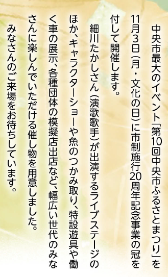 イベント 中央市市制施行20周年記念事業 第10回中央市ふるさとまつり 1/36 次の記事 発行日 : 2025年10月01日 自治体名 : 山梨県中央市 広報紙名 : 広報ちゅうおう 2025年10月号 ※詳細は、本紙P.2~3をご覧ください。 Tweet シェアする 第1回 Nordisk Mountain Trail in YAMANASHI CHUO