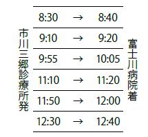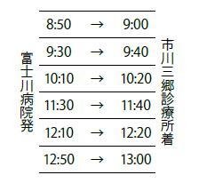 峡南医療センターでは、市川三郷診療所と富士川病院での受診を円滑にすることを目的としたシャトルバスを運行しております。