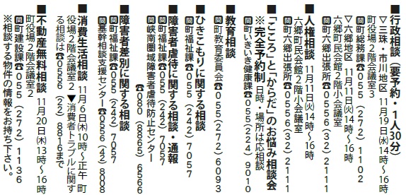 くらし 今月の各種相談 11/33 前の記事 次の記事 発行日 : 2025年11月01日 自治体名 : 山梨県市川三郷町 広報紙名 : 広報いちかわみさと 令和7年11月号 Tweet シェアする 11月 いちかわみさとカレンダー 子どもの急病や心配ごとの相談は…