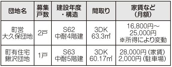 ※入居要件は町営、町有団地で異なります。詳しくはお問い合わせください。