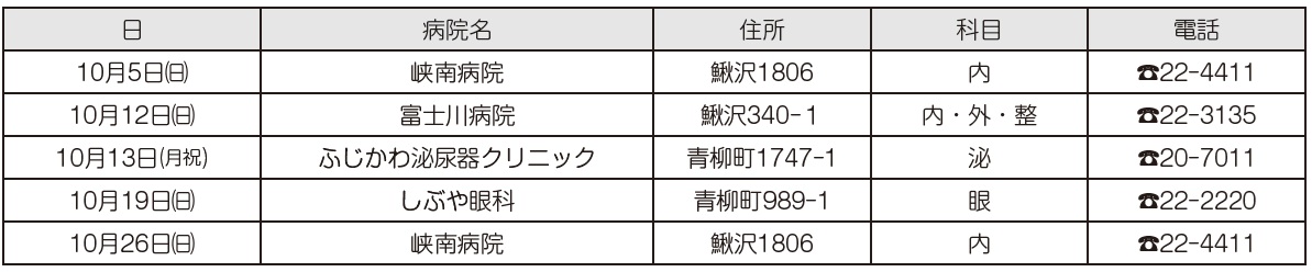 ※当番表は予定であり、変更することがあります。ご利用の際は、町HPをご確認ください。