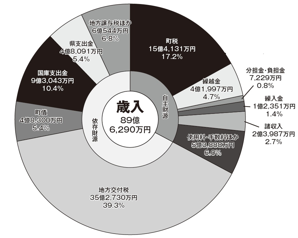 主要な自主財源の町税は前年度比4.2%の減となったものの、国から交付される地方交付税は4.5%の増となりました。