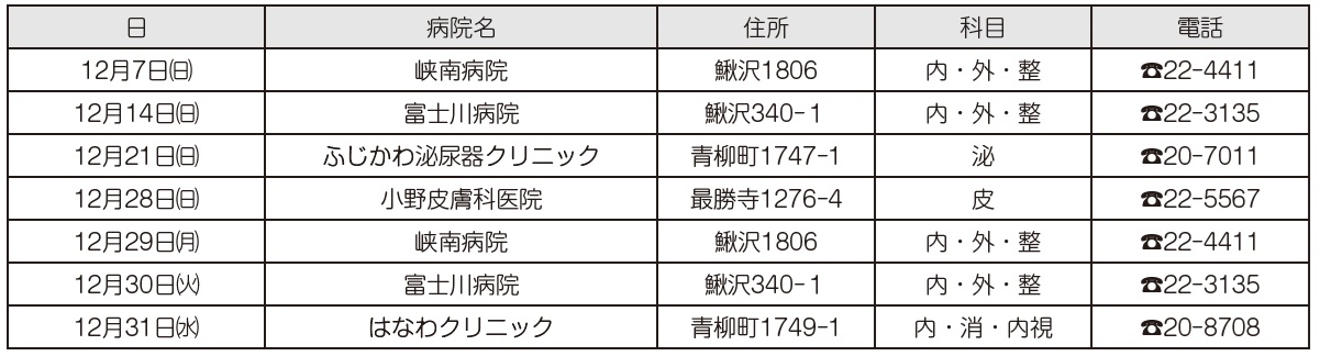 ※当番表は予定であり、変更することがあります。ご利用の際は、町HPをご確認ください。