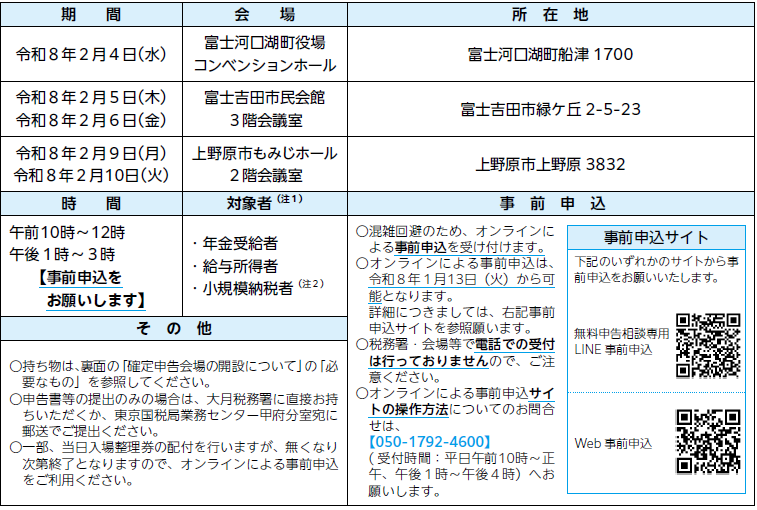 1.土地、建物及び株式などの売却についての申告・相談は対象とはなりません。