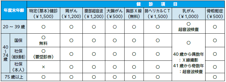 ・各健診(検診)は年度内に1回のみ受診ができます。不正や二重受診が確認された場合には、健診(検診)等の費用を全額請求させていただくことがあります。