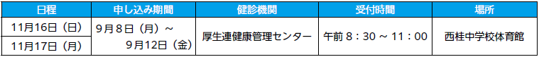※健診当日は混雑予防のため、受付時間を指定させていただきます。ご了承ください。