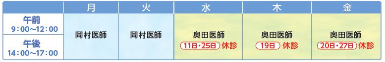 水・木・金:奥田医師→(診察・ワクチン 4歳以上)