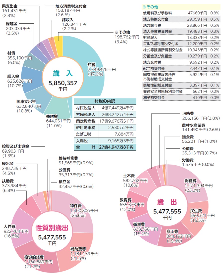 決算とは、年度始まりの4月から翌年の3月の間にいくら収入や支出があったかをまとめた村の家計簿であり、村の財政状況を表すものです。