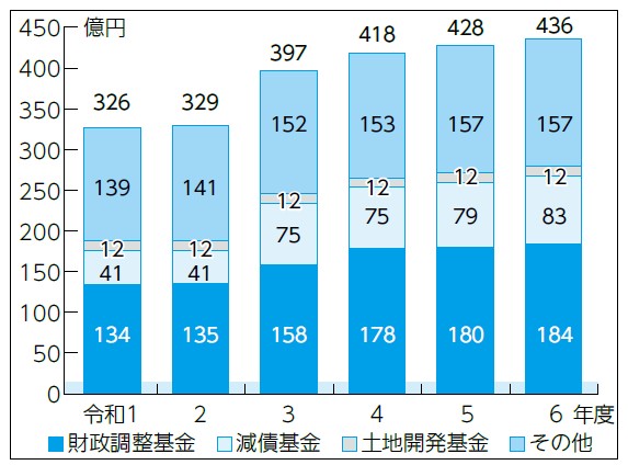 令和6年度は、令和5年度の決算剰余金19億円を財政調整基金に積み立てるなど、合計で33億円を積み立てる一方、25億円を取り崩して事業のために活用しました。