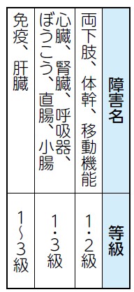 ・身体障害者手帳、戦傷病者手帳などをお持ちで、左表に該当する人
