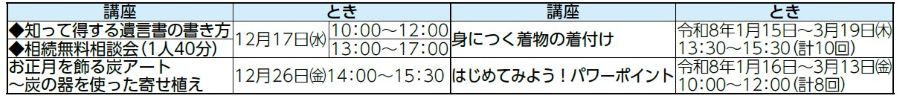 対象:市内在住・在勤の女性(学生は除く。◆は男性も受講可)