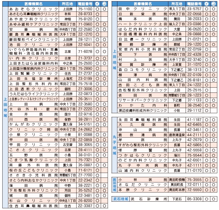 令和7年度 インフルエンザ(イ)・新型コロナ(コ)ワクチン接種委託医療機関一覧表