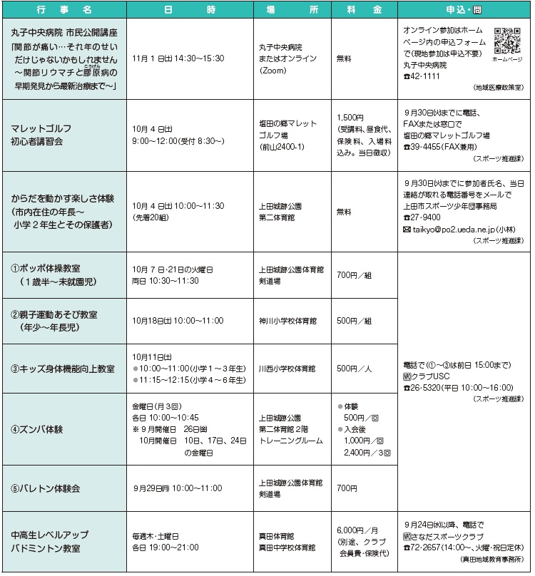 申込:9月30日(火)までに参加日・人数を電話またはメールで