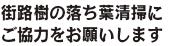 市では街路樹の定期的な剪定を行っていますが、毎年秋になると葉が落ちる樹も多いため、地域の皆さまによる落ち葉清掃のご協力をお願いします。