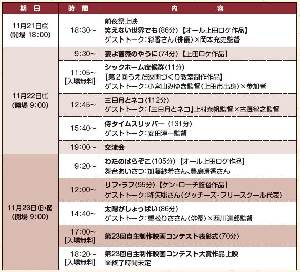 問合せ:うえだ城下町映画祭実行委員会事務局(文化政策課内)