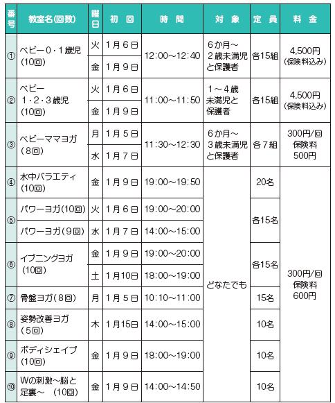 ・上記以外のキッズ年少・年中・年長、各ジュニア教室は、電話または窓口でお問い合わせください。