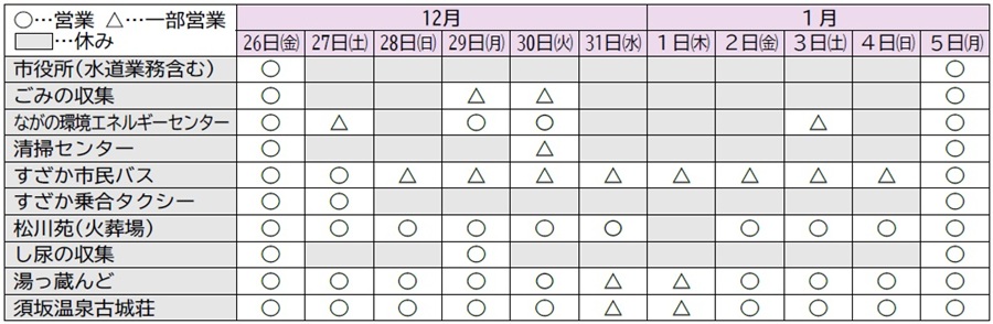 12月26日(金)~2026年1月5日(月)は下記のとおり営業します