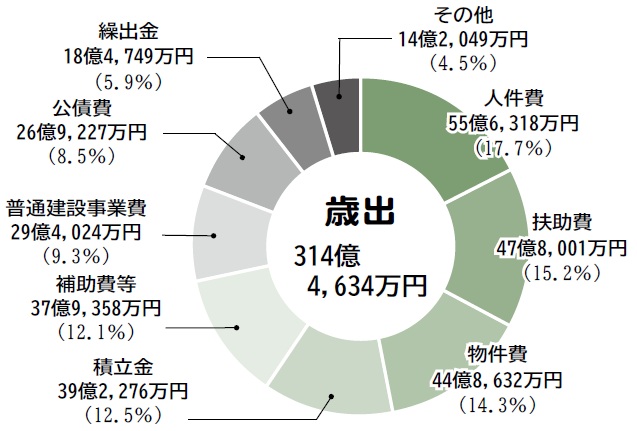 2024年度決算の総額は、歳入が321億7622万円、歳出が314億4634万円になりました。