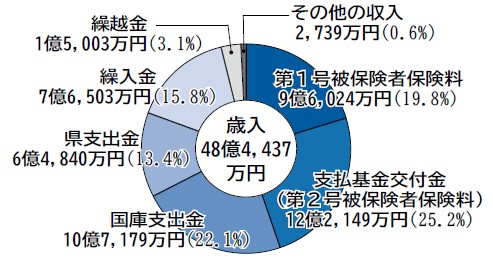 県からの支出金は、33億5321万円で収入総額の70・8%を占めています。