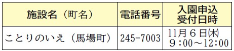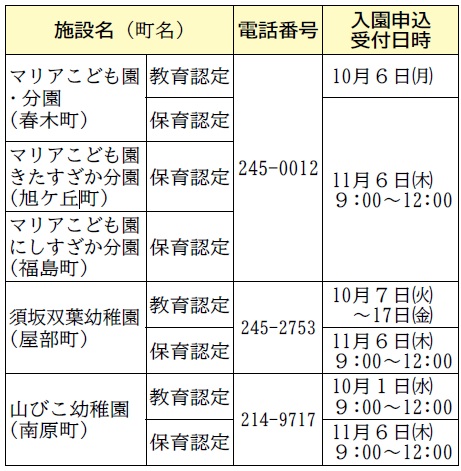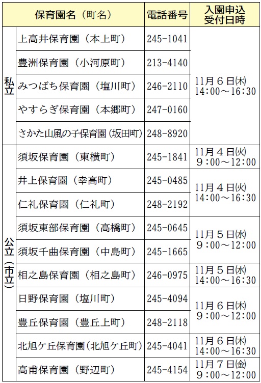 ・入園申込受付日~11月13日(木)