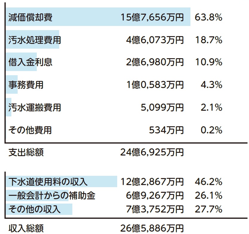 下水道施設の建設や改良工事を行った年だけですべての額を負担するのではなく、その施設が使用できる期間(耐用年数)に分けて負担(経費計上)することをいいます。