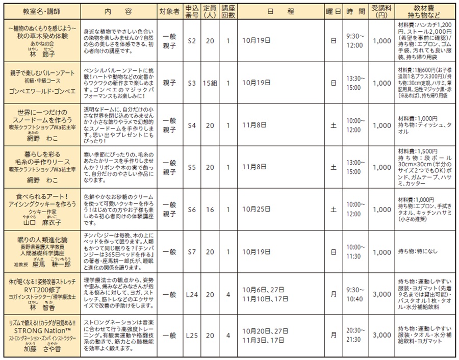 市報8月号に掲載した講座に引き続き追加の講座を企画しました。8月号も再チェック!!