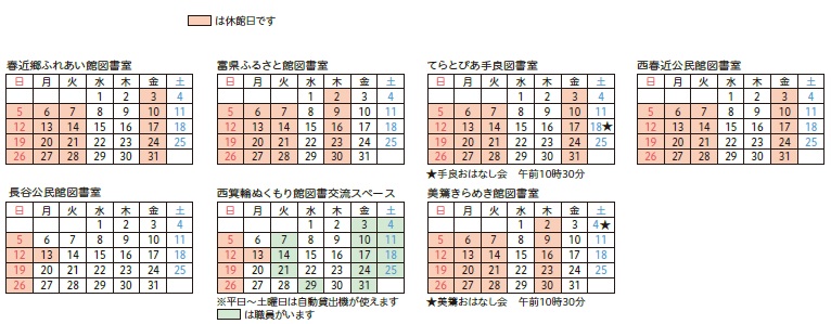 2-3歳児対象(読み聞かせ)…15日(水)、29日(水)午前11時