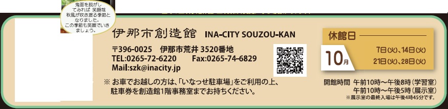文化 ~縄文から宇宙まで~創造館だより monthly report vol.172 35/54 前の記事 次の記事 発行日 : 2025年10月01日 自治体名 : 長野県伊那市 広報紙名 : 市報いな 令和7年10月号 ※詳しくは本紙をご覧ください。 Tweet シェアする 文化施設だより-高遠町歴史博物館・伊那市民俗資料館からのお知らせ 公民館報いな-今月のPhoto