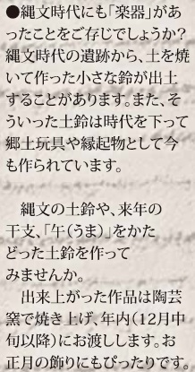 来年の干支の「午(うま)」の土鈴を作りましょう。