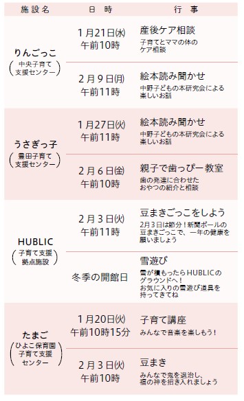 ■子育て支援センター 子育て支援拠点施設 1・2月の行事予定