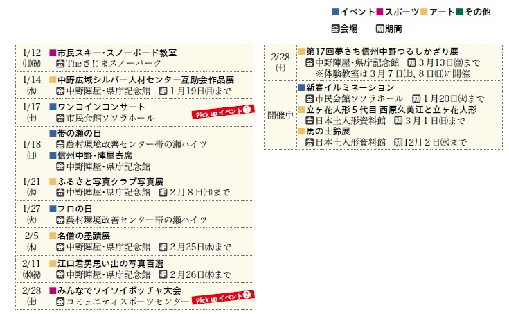 イベント 暮らしの情報掲示板~1・2月イベントカレンダー 19/42 前の記事 次の記事 記事を読み上げる 発行日 : 2026年01月05日 自治体名 : 長野県中野市 広報紙名 : 広報なかの 2026年1月号 Tweet シェアする ご寄付ありがとうございました 暮らしの情報掲示板~Pick up イベント「開催」
