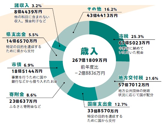 2024年度に皆さんに納めていただいた税金や国・県などから交付されたお金がいくらで、どのように使われたかをお知らせします。