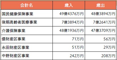 特定の事業を行うため一般会計と分けて経理をしている会計。6つの特別会計は、すべて黒字となりました。