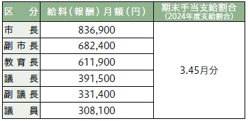 ◆6 特別職給料、議員報酬の状況(2025年4月1日現在)