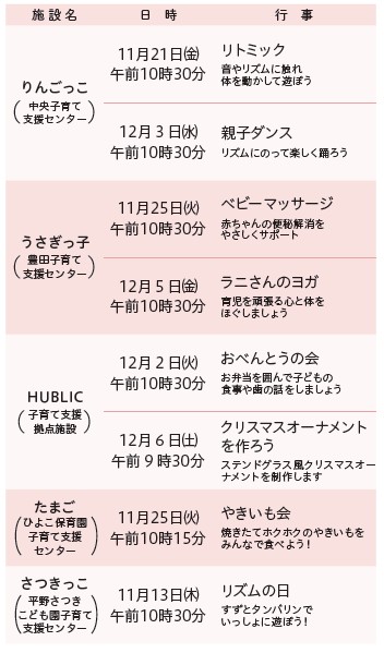 ■子育て支援センター 子育て支援拠点施設 11・12月の行事予定