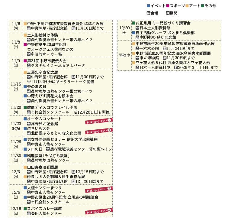 イベント 暮らしの情報掲示板~11・12月イベントカレンダー 18/38 前の記事 次の記事 記事を読み上げる 発行日 : 2025年11月05日 自治体名 : 長野県中野市 広報紙名 : 広報なかの 2025年11月号 Tweet シェアする ご寄付ありがとうございました 暮らしの情報掲示板~Pick up イベント「開催」