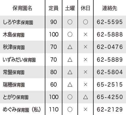・児童が満1歳(めぐみ保育園は満6か月)に到達していること。