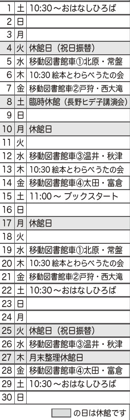 ※各イベント開催時間などの詳細は、市立飯山図書館のホームページでお知らせいたします。