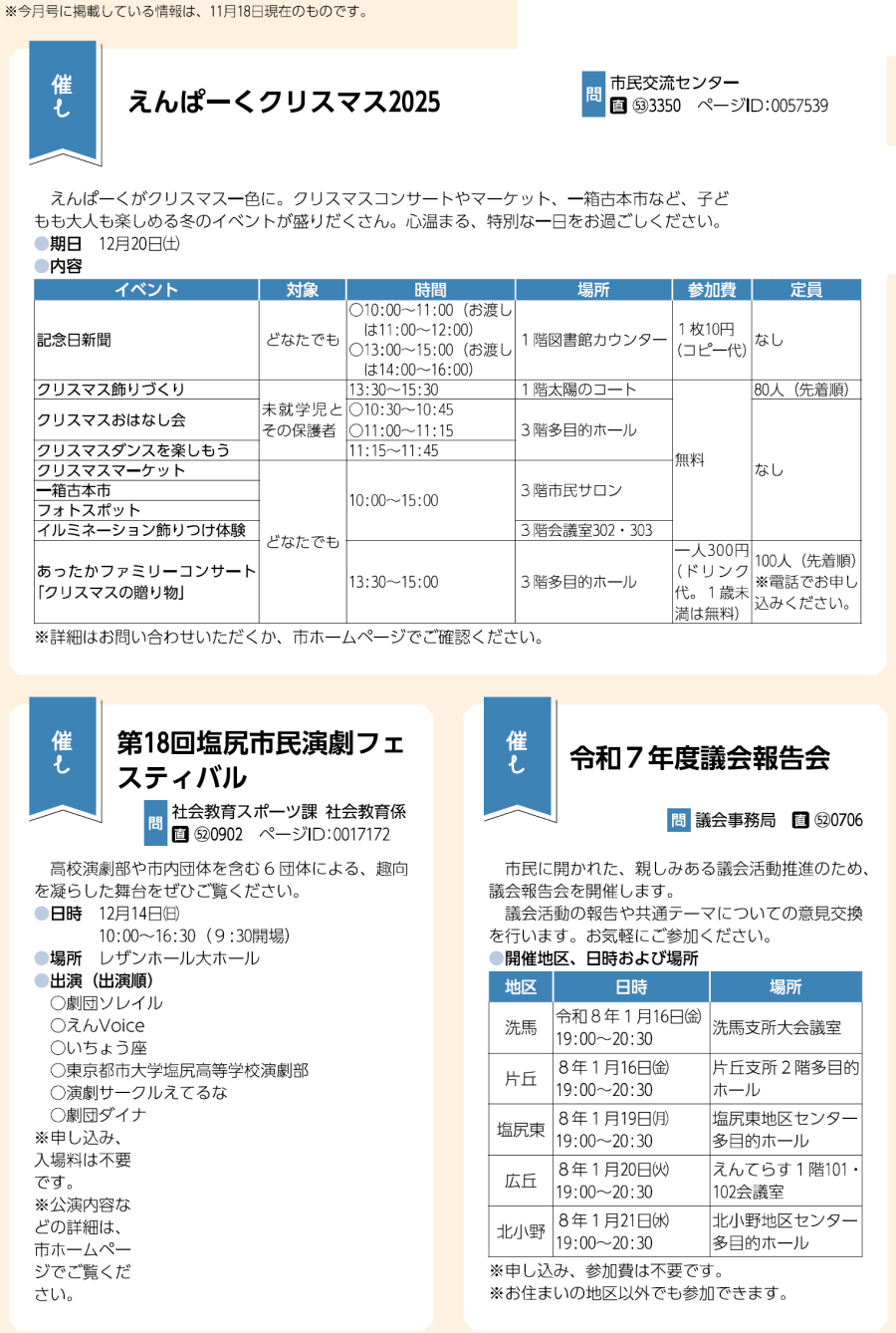 イベント 市政トピックス(1) 14/40 前の記事 次の記事 発行日 : 2025年12月01日 自治体名 : 長野県塩尻市 広報紙名 : 広報しおじり 令和7年12月号 Tweet シェアする マンガでまなぼ 市政トピックス(2)