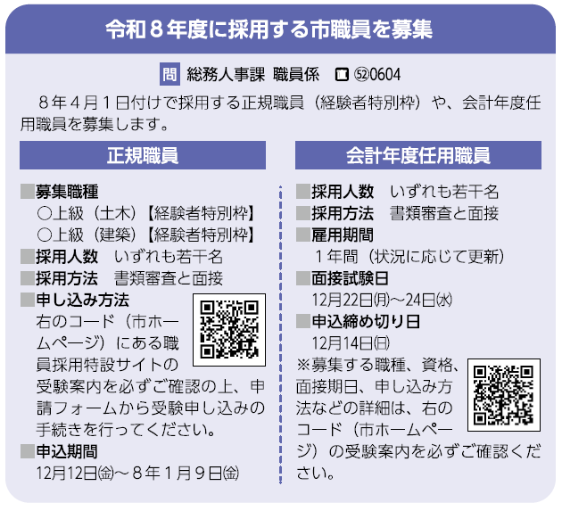 しごと 令和8年度に採用する市職員を募集 18/40 前の記事 次の記事 発行日 : 2025年12月01日 自治体名 : 長野県塩尻市 広報紙名 : 広報しおじり 令和7年12月号 Tweet シェアする くらしの情報~お知らせ(2)~ 新春書き初め会