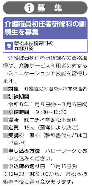 くらし くらしの情報~募集~ 21/40 前の記事 次の記事 発行日 : 2025年12月01日 自治体名 : 長野県塩尻市 広報紙名 : 広報しおじり 令和7年12月号 Tweet シェアする 令和7年度信州まつもと空港冬期利用促進助成金制度のご案内 暖房器具の取り扱いに注意