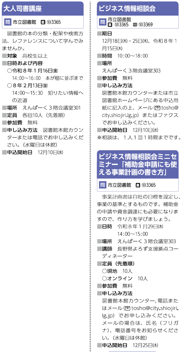 くらし くらしの情報~図書館~ 25/40 前の記事 次の記事 発行日 : 2025年12月01日 自治体名 : 長野県塩尻市 広報紙名 : 広報しおじり 令和7年12月号 Tweet シェアする くらしの情報~講座・教室~ くらしの情報~子育て~