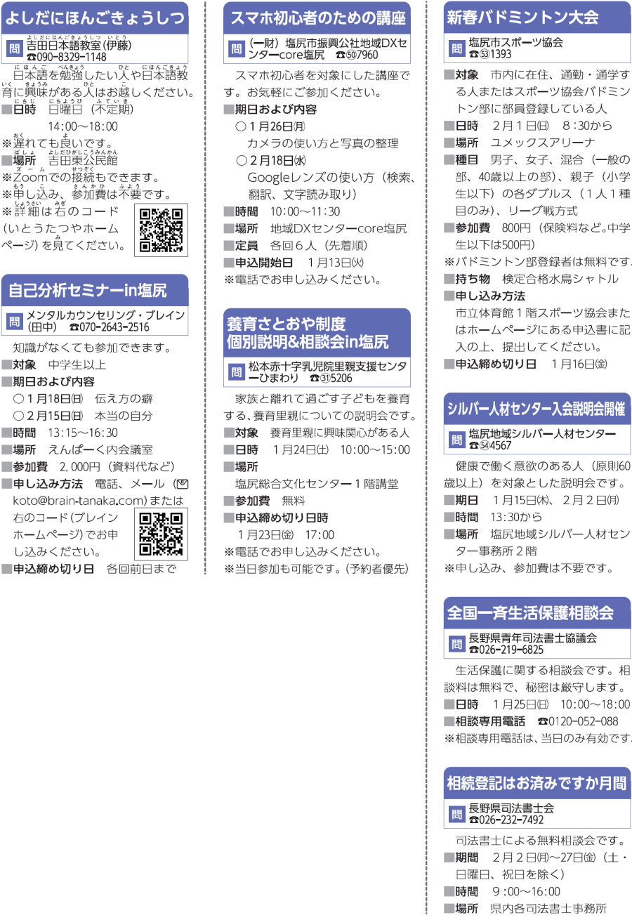 くらし くらしの情報~伝言板~ 26/33 前の記事 次の記事 発行日 : 2026年01月01日 自治体名 : 長野県塩尻市 広報紙名 : 広報しおじり 令和8年1月号 Tweet シェアする 「塩尻ワイナリーフェスタ2026」を開催 出張一時的(デイ)保育を行います